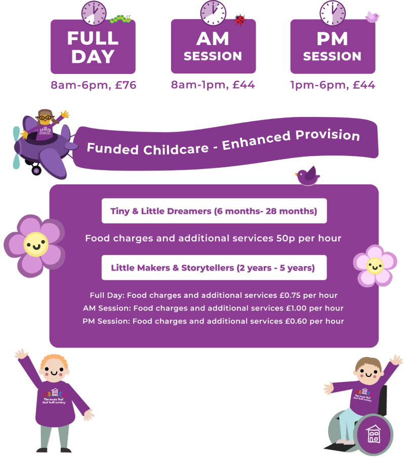 We also include digital access to your child’s online learning journey where you can live their day with them, and a variety of nursery events throughout the year for the children and our nursery families.